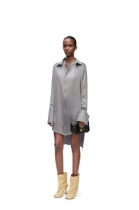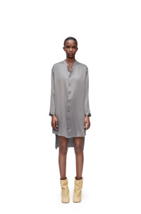 Deconstructed shirt dress crafted in lightweight soapy silk satin. - Relaxed fit - Knee length - Detachable contrast collar and cuffs - Long sleeves - Concealed button front fastening - Box pleat at the back - Asymmetric front to back - Anagram embroidery placed at the front Details - Colour: Mouse Grey - Main material: Silk - Weight: 0.4 kg - Model ID: S359Y09XAX - Made in: Italy