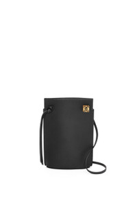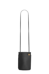 Utilitarian pouch in classic calfskin with a shoulder strap and an Anagram dice. - Shoulder or crossbody carry - With two leather straps to add personalization dice - Rear card slot - Embossed LOEWE on base Details - Colour: Black - Metallic colour: Gold - Main material: Classic Calf - Strap length: 53 - 113 cm - Handle drop: 30 cm - Weight: 0.12 kg - Height (cm): 20.5 - Width (cm): 12.7 - Depth (cm): 4.5 - Height (inch): 8.1 - Width (inch): 5 - Depth (inch): 1.8 - Model ID: C630R12X01 - CIL: 0010795185 - Made in: Spain