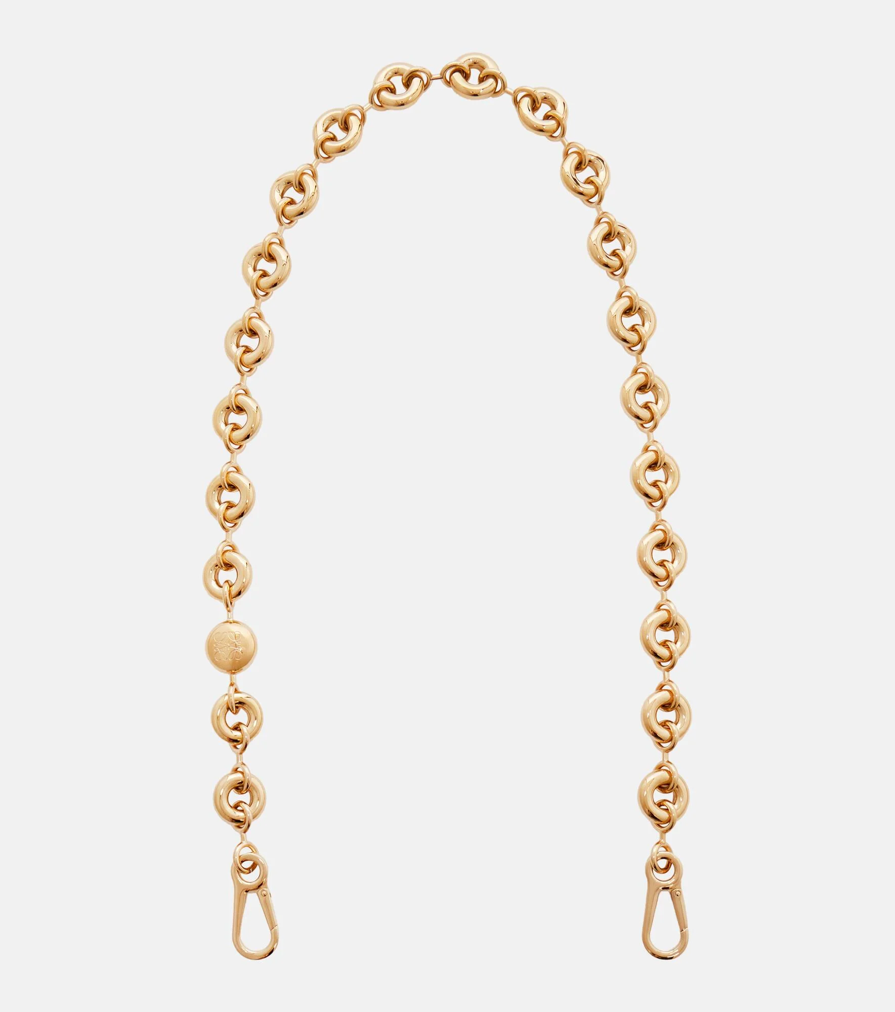 Playful proportions are a Loewe signature, highlighted by the exaggerated form of the Donut bag strap. Finished with a gold-toned coating, this chain piece is complete with hook fastenings. Product Details - Material: brass - Lining: brass - Made in China - Designer color name: Gold - Item color: gold - Closure: hook fastening - Item number: P01121210 Size & Fit - Length when open 67cm-26.5" - Width 1.7cm-0.5"