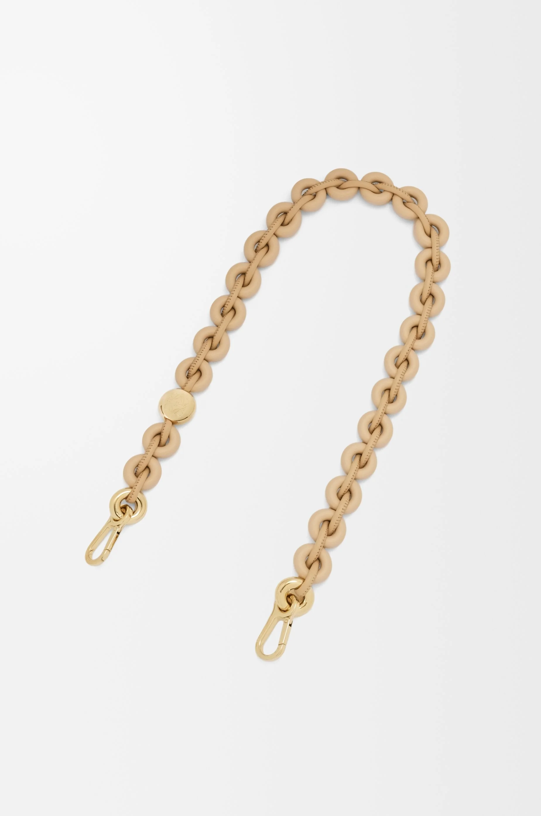 Detachable donut chain strap in calfskin with an Anagram Pebble. - Hook fastening - Engraved LOEWE Colour: Silk Beige Metallic colour: Beige Main material: Brass/Calf Weight: 0.178 kg Width: 62 cm Depth: 2.3 cm Made in: Spain