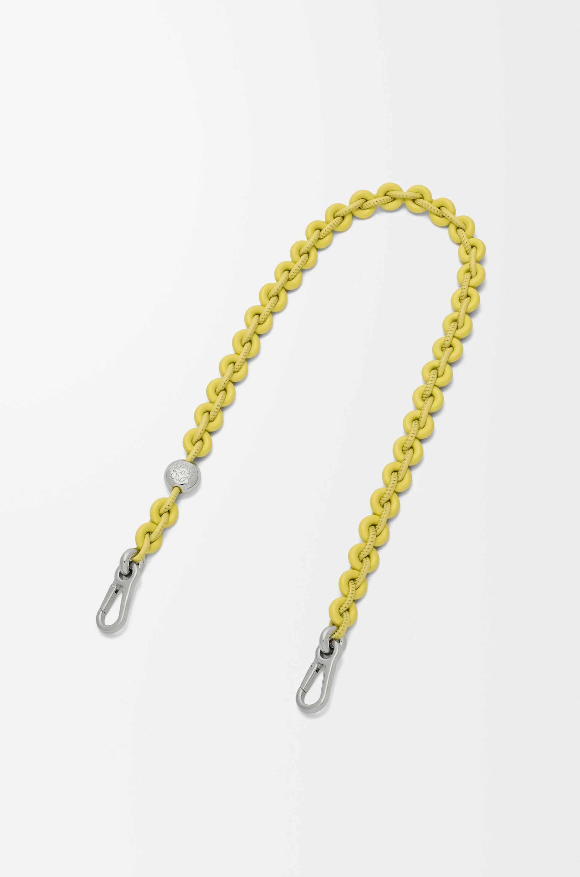 Detachable donut chain strap in brass and calfskin. - 60cm long, 1.8cm wide - Dogclip fastening - Engraved LOEWE Colour: Light Citrine Metallic colour: Palladium Main material: Brass/Leather Weight: 0.093 kg Width: 55 cm Depth: 1.5 cm Made in: Spain
