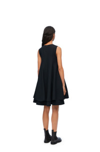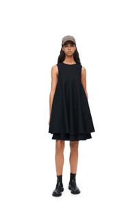 Double layer dress crafted in medium-weight silk and wool crepe. - Regular fit - Short length - Layered construction - Pleated volume silhouette - Round neck - Invisible zip back fastening - Seam pockets - Raw edges - Anagram embossed leather tab at the hem Details - Colour: Black - Main material: Silk/Wool - Weight: 0.9 kg - Model ID: S359Y09XCT - Made in: Italy