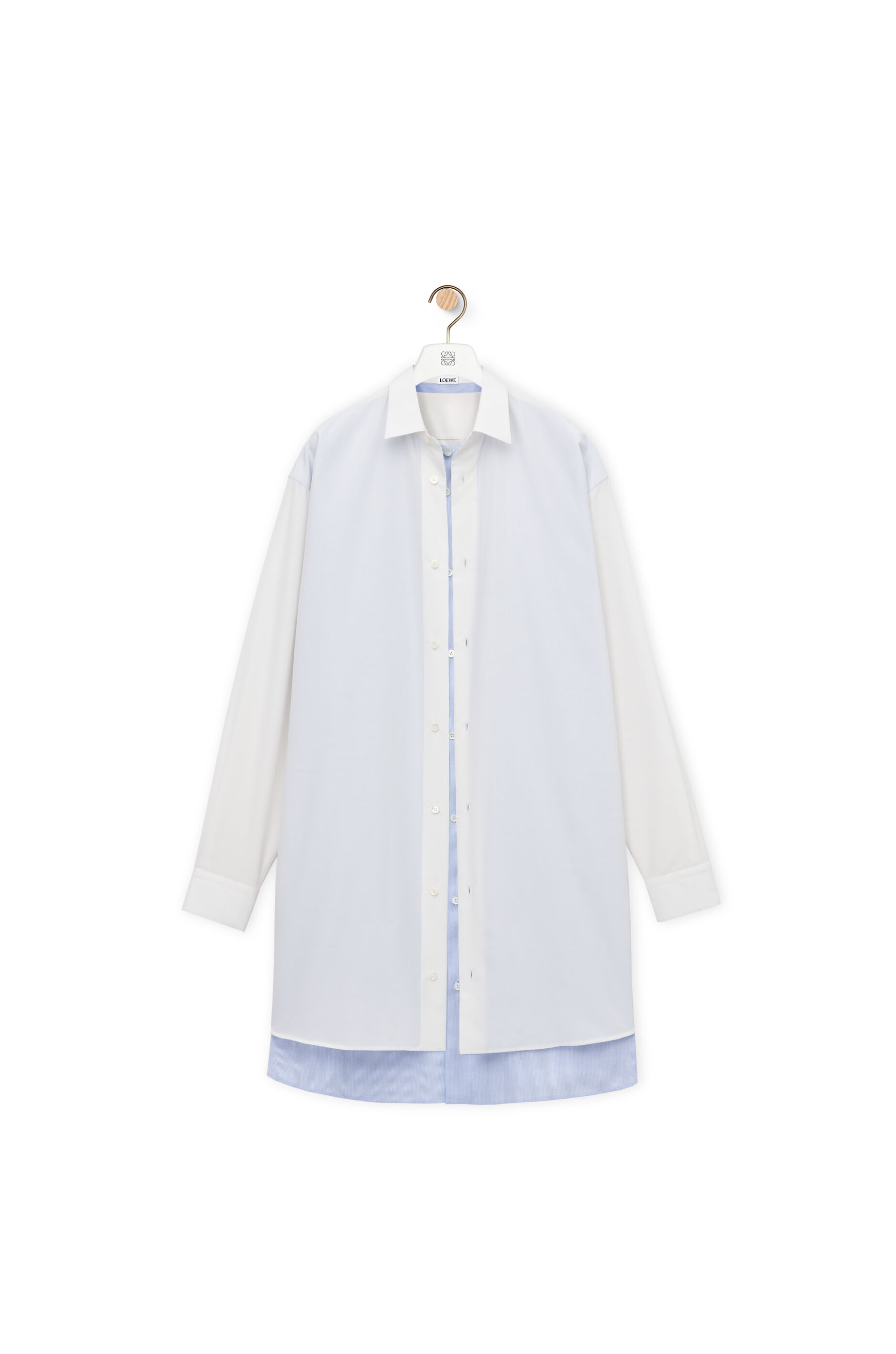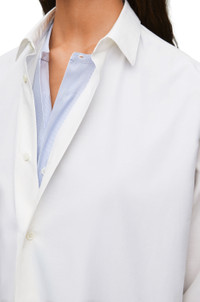 Double layer shirt dress crafted in lightweight cotton and silk blend. - Regular fit - Short length - Double layer construction with contrasting fabrics - Classic collar - Buttoned cuffs - Button front fastening - Split sides - Anagram jacquard tab placed at the side hem Details - Colour: White/Blue - Main material: Cotton/Silk - Weight: 1.0 kg - Model ID: S359Y09XD9 - Made in: Italy