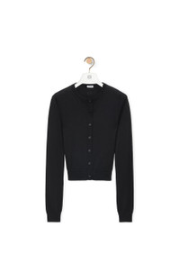Cardigan in lightweight cashmere and silk featuring gathered details at the sides. - Slim fit, regular length - Jersey stitch - Round neck - Ribbed collar, cuffs and hem - Button front fastening - Anagram embroidery placed at the back Details - Colour : Black - Main material : Cashmere/Silk - Weight : 0.2 kg - Model ID : S540Y16K69 - Made in : Italy