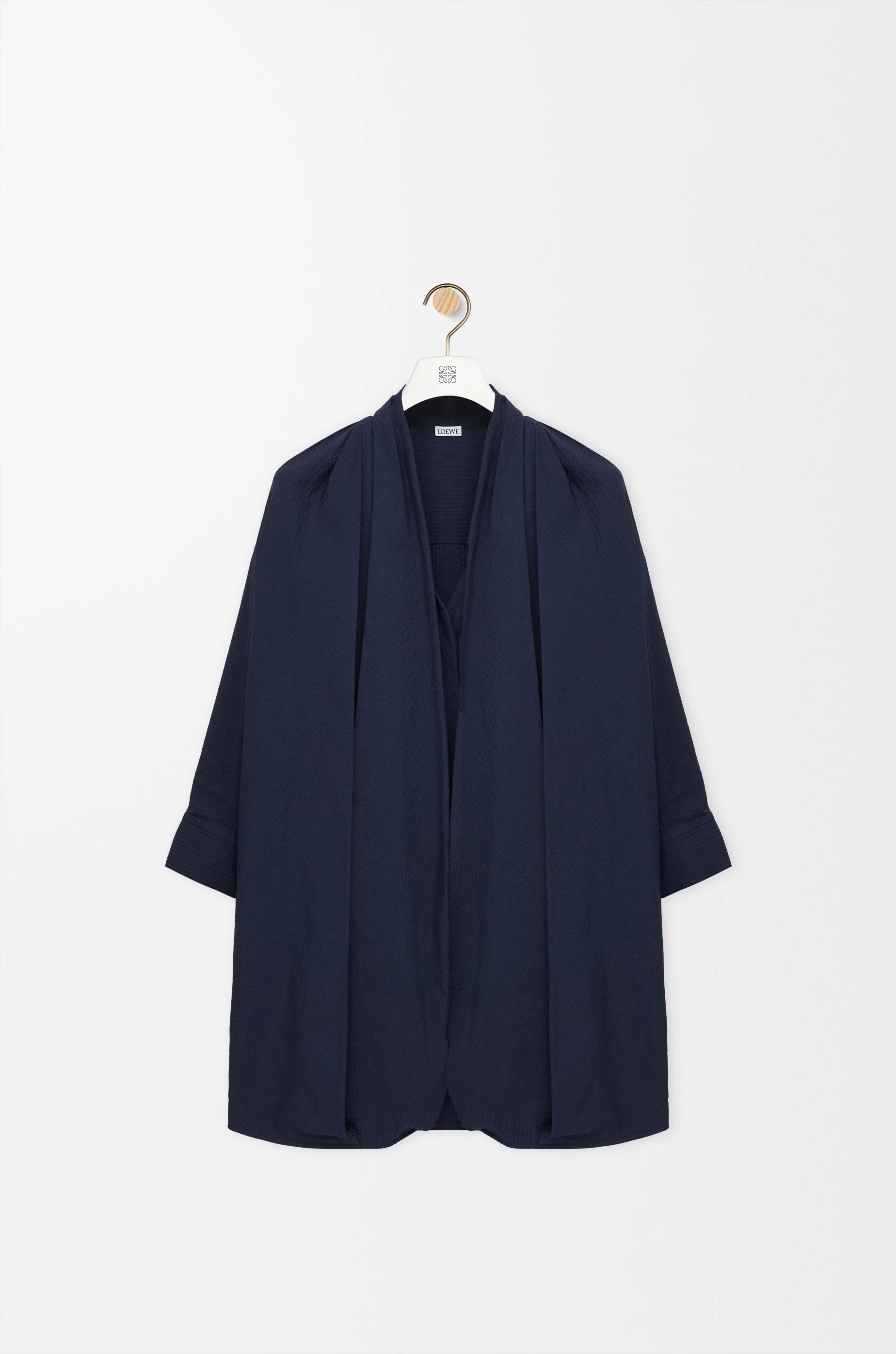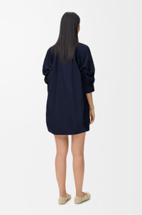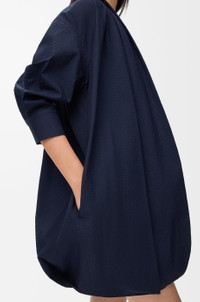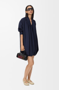 Dress in lightweight textured cotton poplin featuring a balloon silhouette with draping at the front. - Relaxed fit, short length - V-neck - Concealed button front fastening - Anagram embroidery placed at the back Colour: Navy Blue Main material: Cotton Weight: 0.3 kg Made in: Italy Materials & care Main Material: 100% cotton