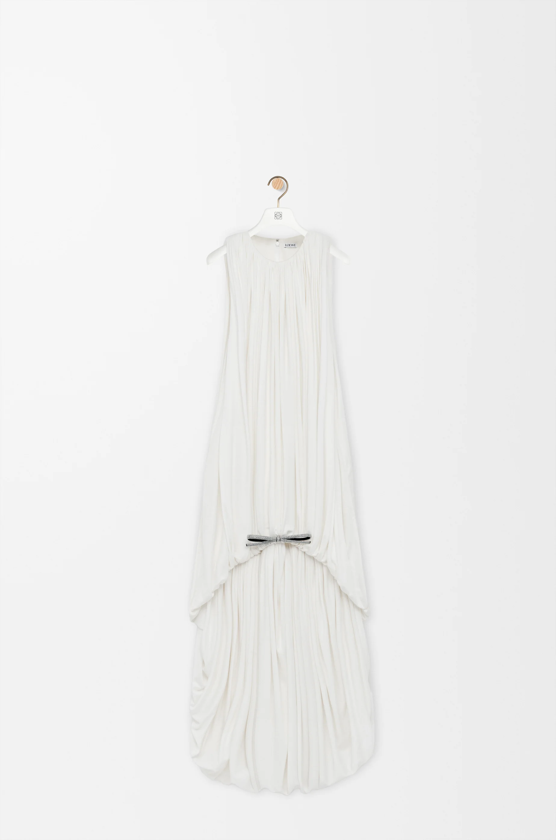Dress in lightweight fluid silk jersey featuring an asymmetric draped silhouette and a crystal-embellished suede bow at the front. - Regular fit, short lenght - Rear zip fastening - Puffed hem - Fully lined Colour: White Main material: Silk Weight: 0.75 kg Made in: Spain Materials & care Main Material: 100% silk