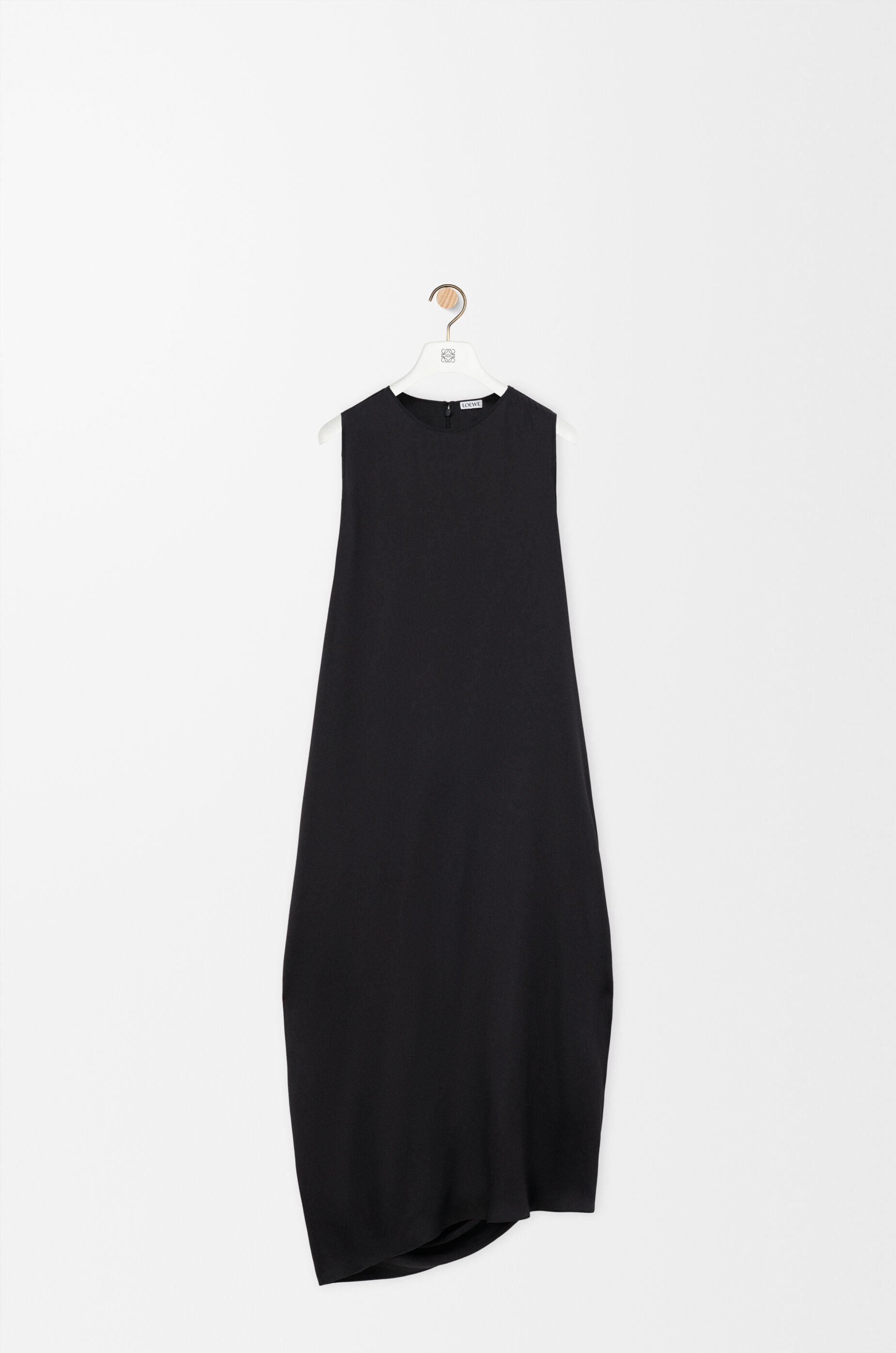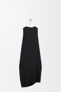 Dress in lightweight washed silk satin featuring asymmetric hand-gathered draping at the back. - Regular fit, mid length - Round neck - Rear hook and zip fastening, seam pockets - Side slit - Fully lined - LOEWE embossed leather patch placed at the back Details - Colour : Black - Main material : Silk - Weight : 0.2 kg - Model ID : S540Y09XRW - Made in : France