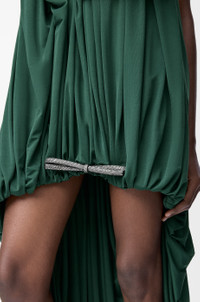 Dress in lightweight fluid silk jersey featuring an asymmetric draped silhouette and a crystal-embellished suede bow at the front. - Regular fit, short lenght - Rear zip fastening - Puffed hem - Fully lined Colour: Green Main material: Silk Weight: 0.75 kg Made in: Spain Materials & care Main Material: 100% silk