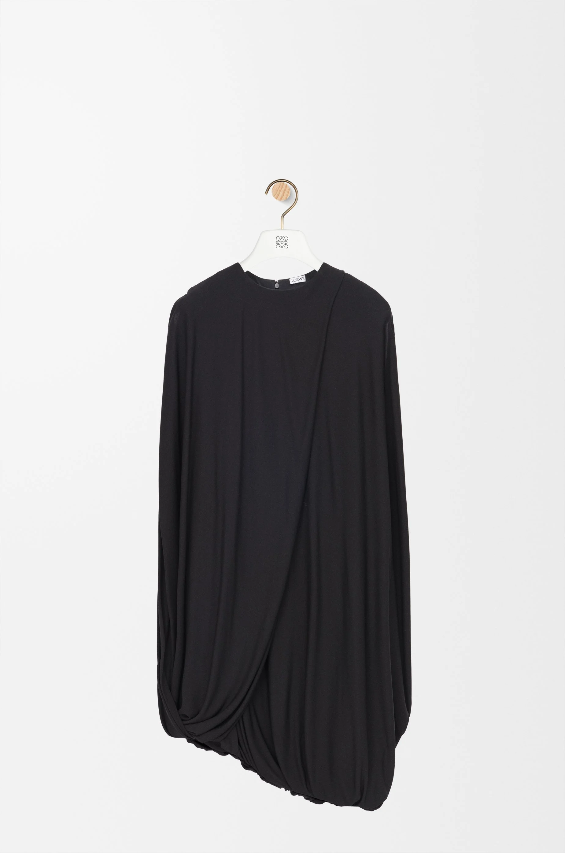 Dress in lightweight viscose crepe jersey featuring an asymmetric silhouette with a hand-draped construction. - Relaxed fit, knee length - Round neck - Rear button fastening - Fully lined Colour: Black Main material: Viscose Weight: 1.2 kg Made in: Italy Materials & care Main Material: 100% viscose