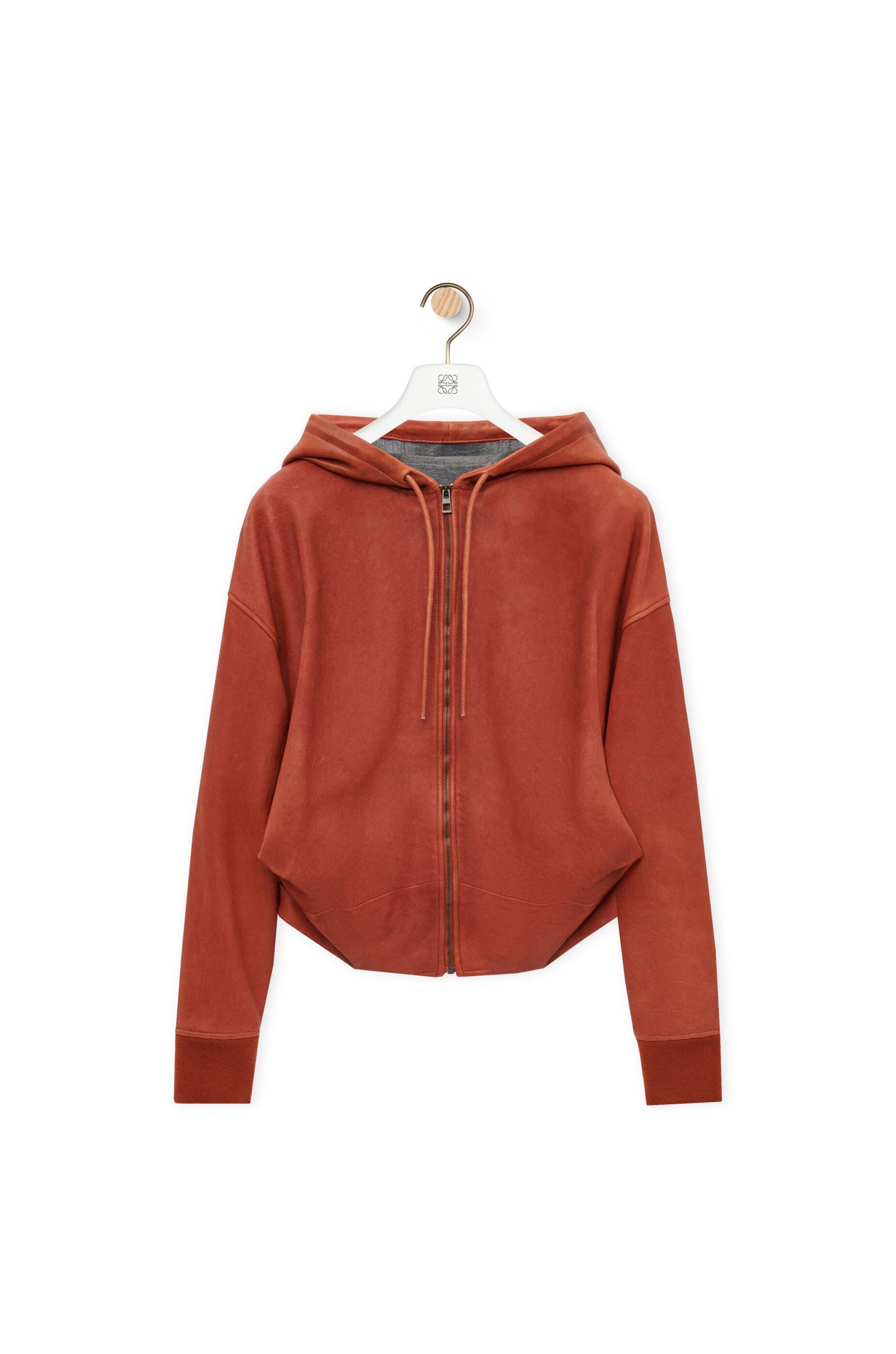 Hoodie in lightweight vintage-effect nappa lambskin featuring an asymmetric draped silhouette. - Relaxed fit, regular length - Hooded collar with drawstring - Rib knit cuffs and hem - Zip front fastening - Jersey bonding Details - Colour : Orange - Main material : Nappa - Weight : 1.0 kg - Model ID : S359Y34L47 - Made in : Italy