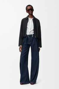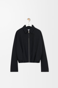 Jacket in lightweight wool crepe tailoring featuring asymmetric hand-gathered draping at the back. - Regular fit, short length - Classic collar - Zip front fastening - Seam pockets, inside welt pocket - Fully lined - LOEWE embossed leather patch placed at the back Colour: Black Main material: Wool Weight: 0.49 kg Made in: Italy Materials & care Main Material: 100% wool