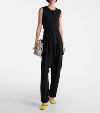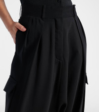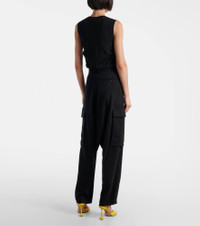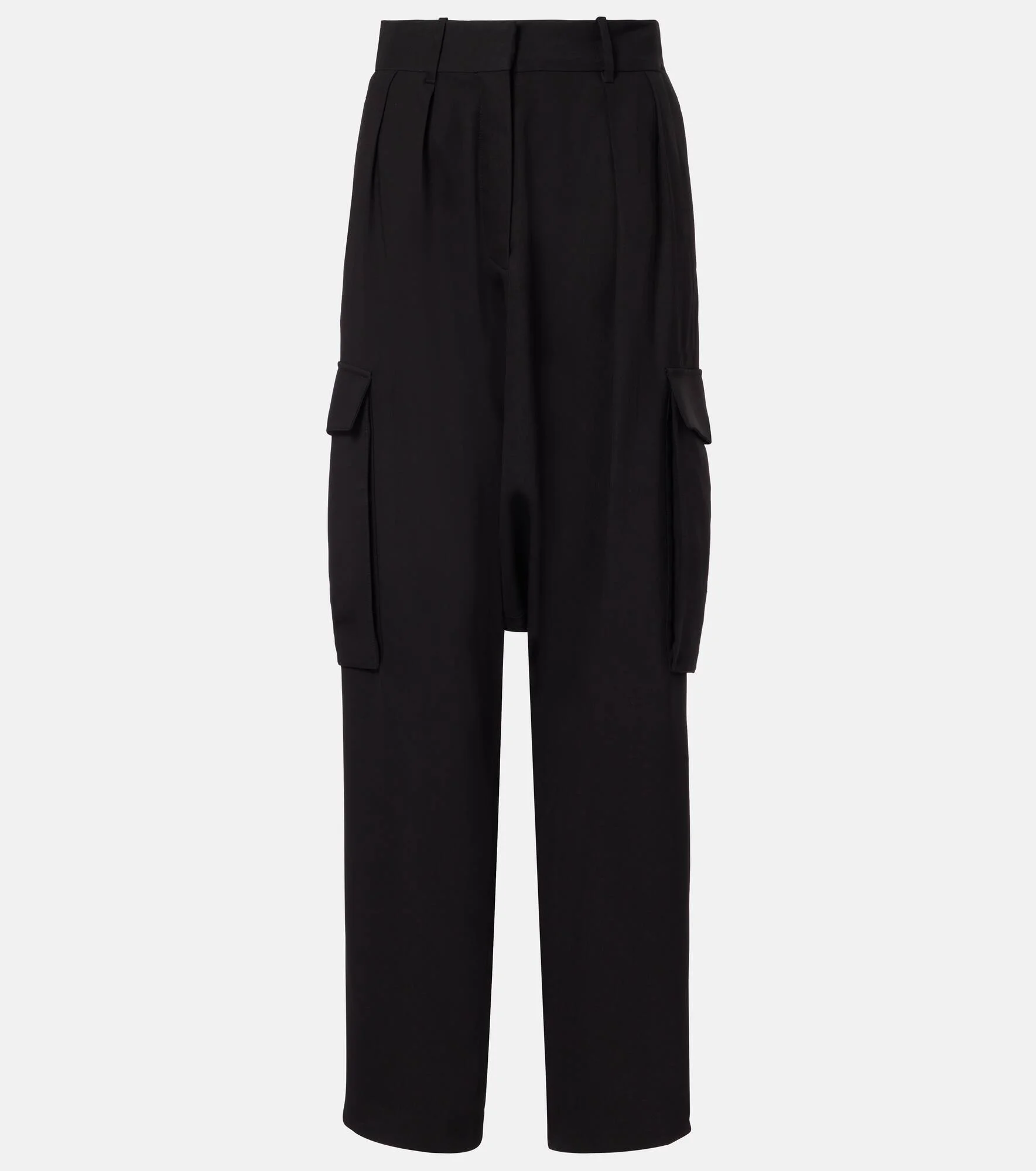 Founded in 1846 as a leathermaking company, Loewe maintains a commitment to art and craft of the utmost quality. These cargo pants feature a unique draped design and boast a straight silhouette with a mid-rise waistline. Product Details - Material: 96% viscose, 4% elastane - Care instructions: dry clean - Made in Italy - Designer color name: Black - Item color: black - Details: 100% polyester - Pocket lining: 100% cotton - Lining: 100% cotton - Contains non-textile parts of animal origin - Pockets: cargo pockets, side slit pockets, back pockets - Belt loops - Closure: zipper, hook fastening - Hem: finished - Item number: P01066157 Size & Fit - True to size - Non-stretchy fabric - Straight leg - Low inseam - Height of model is 175cm-69" and wears a size FR 34