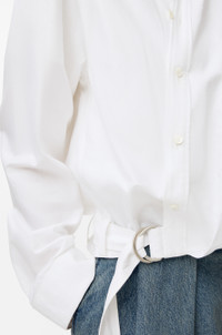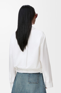 Shirt in lightweight textured cotton poplin featuring an asymmetric silhouette and a twisted construction with draping on one side. - Regular fit, regular length - Button front fastening, buttoned French cuffs - Partially concealed belt - LOEWE engraved D-ring, Anagram embroidery placed at the back Colour: White Main material: Cotton Weight: 0.15 kg Made in: Italy Materials & care Main Material: 100% cotton