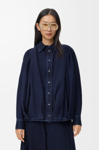 Shirt in lightweight washed cotton denim featuring a balloon silhouette with draping at the front. - Relaxed fit, regular length - Classic collar - Concealed button front fastening, buttoned cuffs - Anagram embroidery placed at the back Colour: Dark Indigo Main material: Cotton Weight: 0.8 kg Made in: Italy Materials & care Main Material: 100% cotton