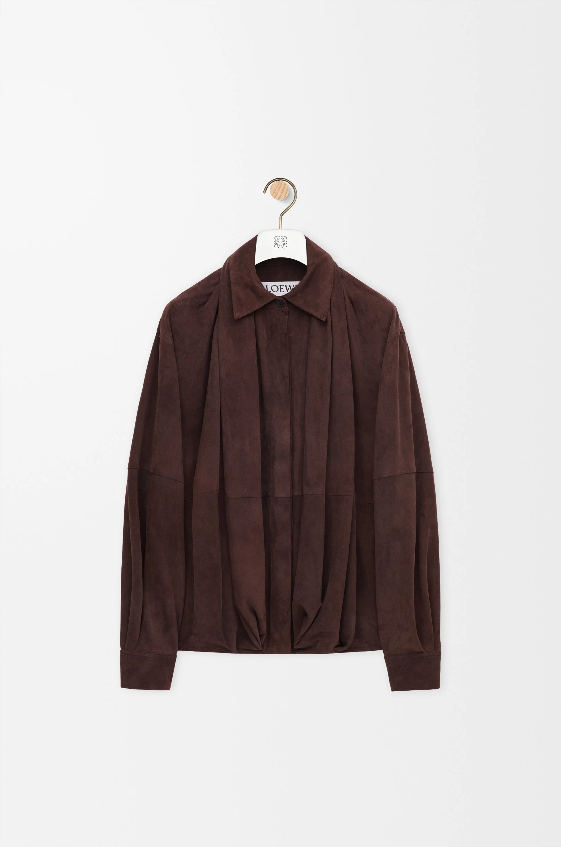 Shirt in lightweight suede goatskin featuring a balloon silhouette with draping at the front. - Relaxed fit, regular length - Classic collar - Concealed button front fastening, buttoned cuffs - Fully lined - Anagram embossed leather patch placed at the back Colour: Brown Main material: Suede Weight: 0.8 kg Made in: Italy Materials & care Main Material: 100% goat skin