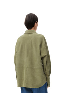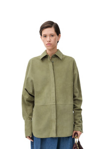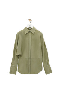 Shirt crafted in lightweight suede lambskin. - Relaxed fit - Regular length - Asymmetric construction with a batwing sleeve on one side - Classic collar - Buttoned French cuffs - Concealed button front fastening - Unlined Details - Colour : Sage - Main material : Suede - Weight : 0.6 kg - Model ID : S540Y31L24 - Made in : Spain