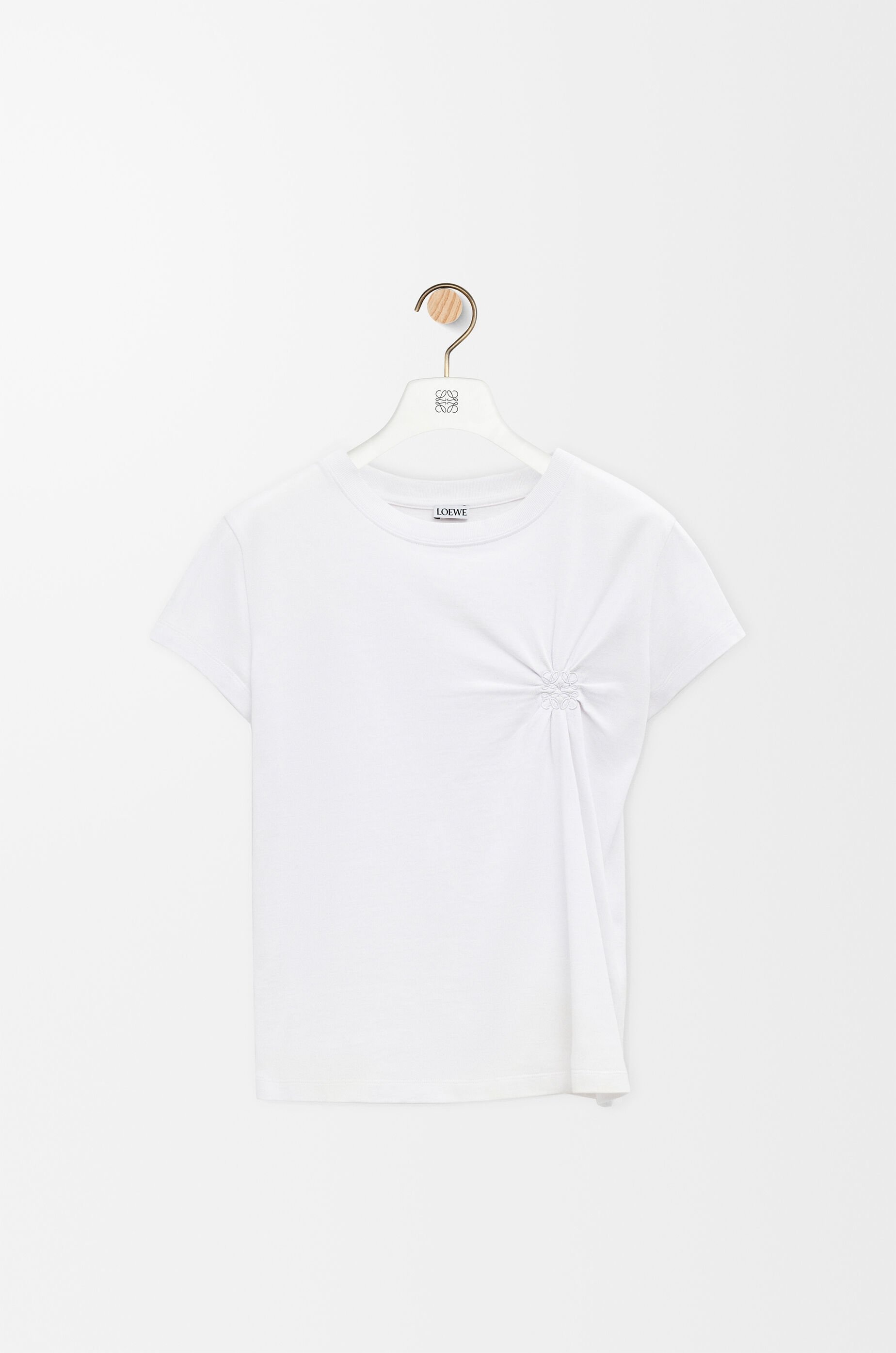 T-shirt in lightweight cotton and viscose featuring a gathered-effect Anagram embroidery on the chest. - Small fit, regular length - Crew neck - Ribbed collar Details - Colour : White - Main material : Cotton/Viscose - Weight : 0.2 kg - Model ID : S359Y22X71 - Made in : Portugal
