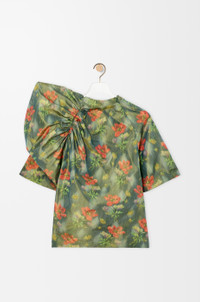 Top in lightweight silk blend taffeta featuring a floral motif and an asymmetric construction with volume draping on one side. - Regular fit, regular length - Round neck - Side zip fastening Colour: Dark Green/Red Main material: Polyester/Silk Weight: 0.5 kg Made in: Italy Materials & care Main Material: 67% polyester 33% silk