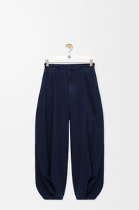 Jeans in lightweight washed cotton denim featuring a draped construction with fixed tabs at the waist. - Relaxed fit, regular length - Mid waist, loose leg - Concealed zip fly - Seam pockets, buttoned rear flap pocket Colour: Dark Indigo Main material: Cotton Weight: 0.8 kg Made in: Italy Materials & care Main Material: 100% cotton