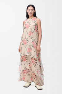 Dress in lightweight silk crepon featuring an allover Peony floral print and an asymmetric construction. - Regular fit, long length - Round neck - Seam pockets - Topstitching detail - Fully lined Details - Colour : Multicolor - Main material : Silk - Weight : 0.1 kg - Model ID : S540Y09XRS - Made in : Spain