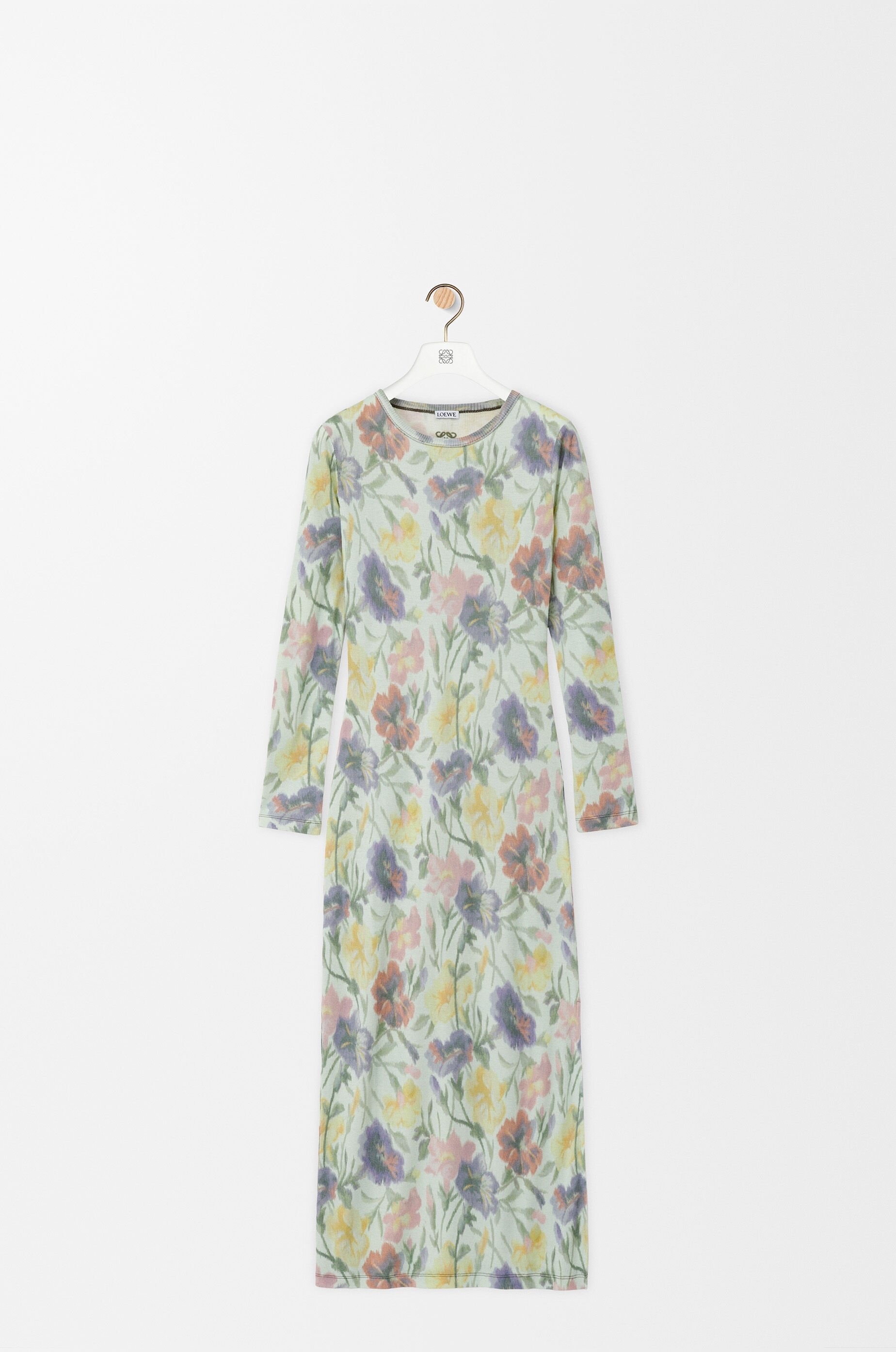 Dress in lightweight ribbed silk and cotton featuring an allover Morning Glory floral print. - Slim fit, long length - Round neck - Side slit - Anagram embroidery placed at the back Details - Colour : Multicolor - Main material : Silk/Cotton - Weight : 0.1 kg - Model ID : S540Y51X37 - Made in : Portugal