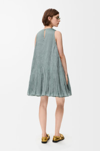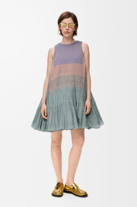 Dress in lightweight silk blend chiffon featuring an A-line silhouette with a layered construction and placed jacquard squares inspired by Josef Albers's "Homage to the Square" series. This collection is part of the LOEWE x Albers collection. - Regular fit, short length - Round neck - Rear button fastening - Seam pockets Colour: Green/Red/Multicolor Main material: Silk/Polyamide/Elasthane Weight: 0.7 kg Made in: Spain Materials & care Main Material: 96% silk 3% polyamide 1% elastane