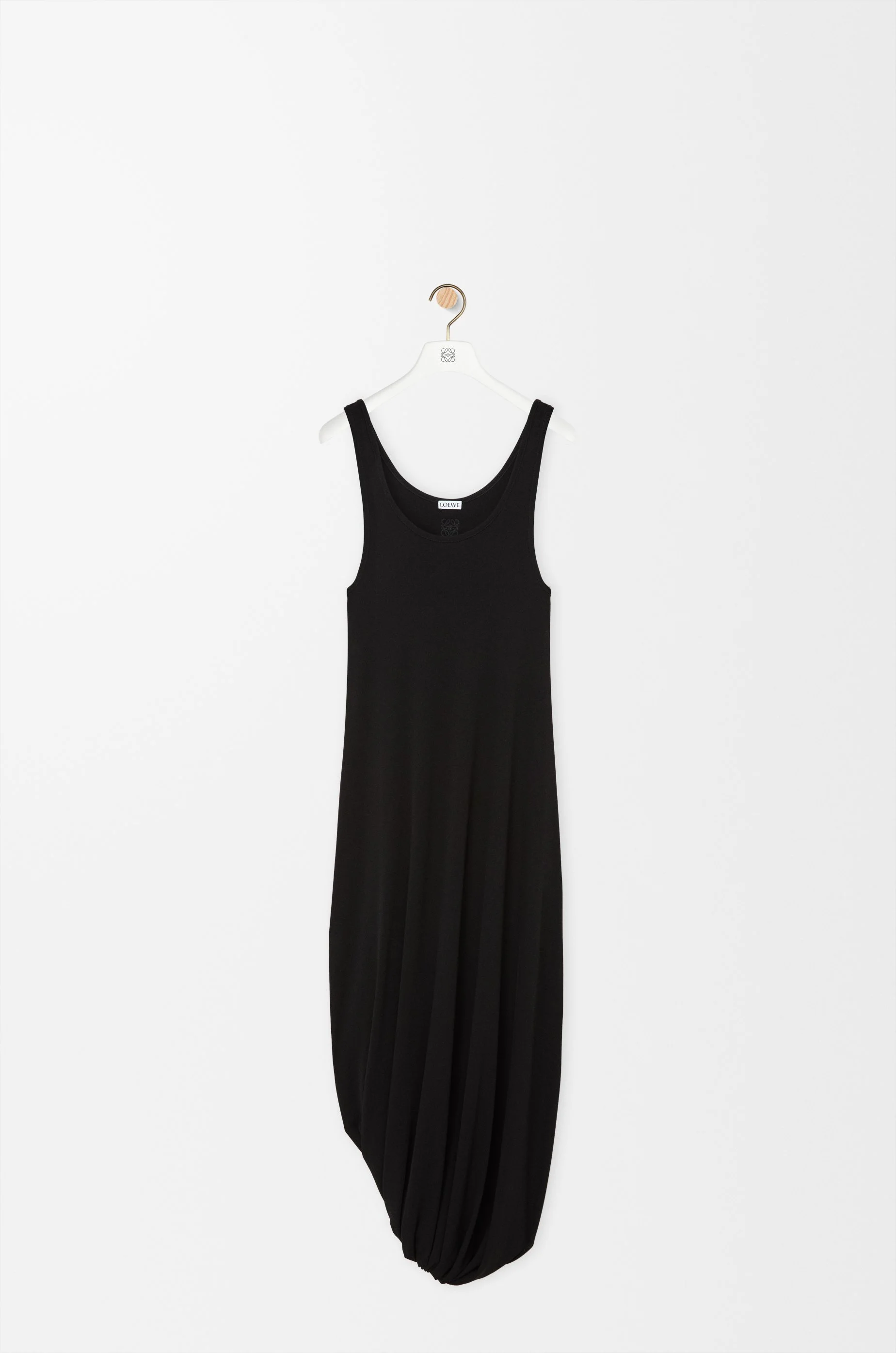 Dress in lightweight fluid viscose crepe jersey featuring an asymmetric silhouette and a twisted draped construction. - Slim fit, knee length - Scoop neck - Double L embroidery placed at the back Colour: Black Main material: Viscose Weight: 0.29 kg Made in: France
