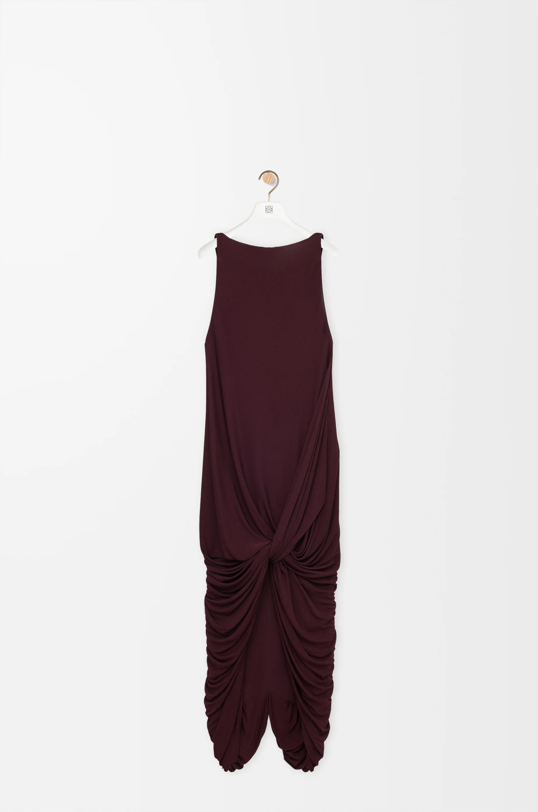 Dress in lightweight fluid crepe viscose jersey featuring an asymmetric silhouette and a draped front with a knotted hem. - Regular fit, mid length - Boat neck - Rear zip fastening - Fully lined Colour: Burgundy Main material: Viscose Weight: 0.85 kg Made in: Spain Materials & care Main Material: 100% viscose