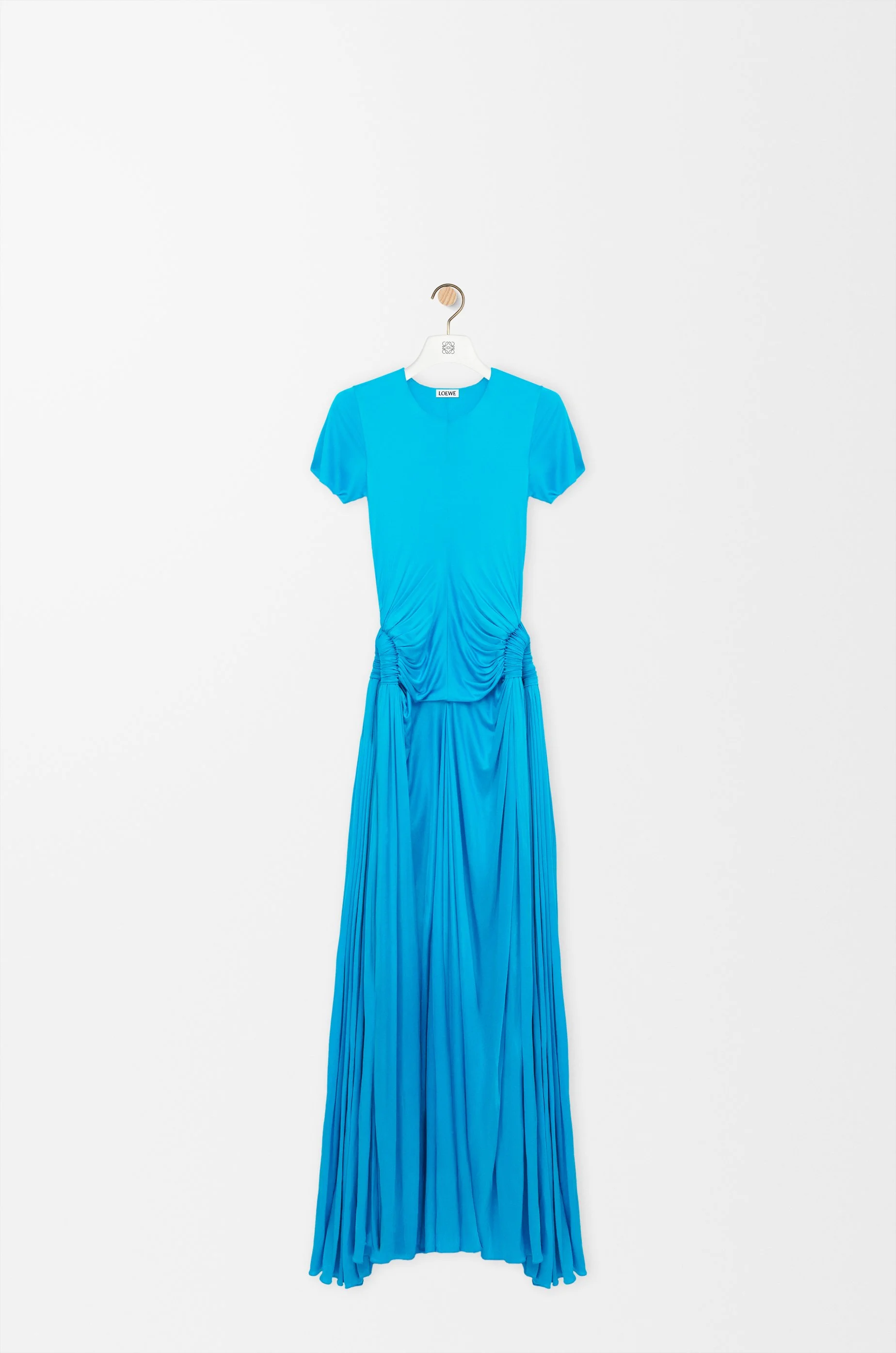 Dress in lightweight fluid viscose jersey featuring a draped skirt with gathering and cut-outs at the hips. - Regular fit, long length - Round neck - Rear zip fastening - Partially lined Colour: Turquoise Main material: Viscose Weight: 0.82 kg Made in: Italy Materials & care Main Material: 100% viscose