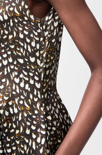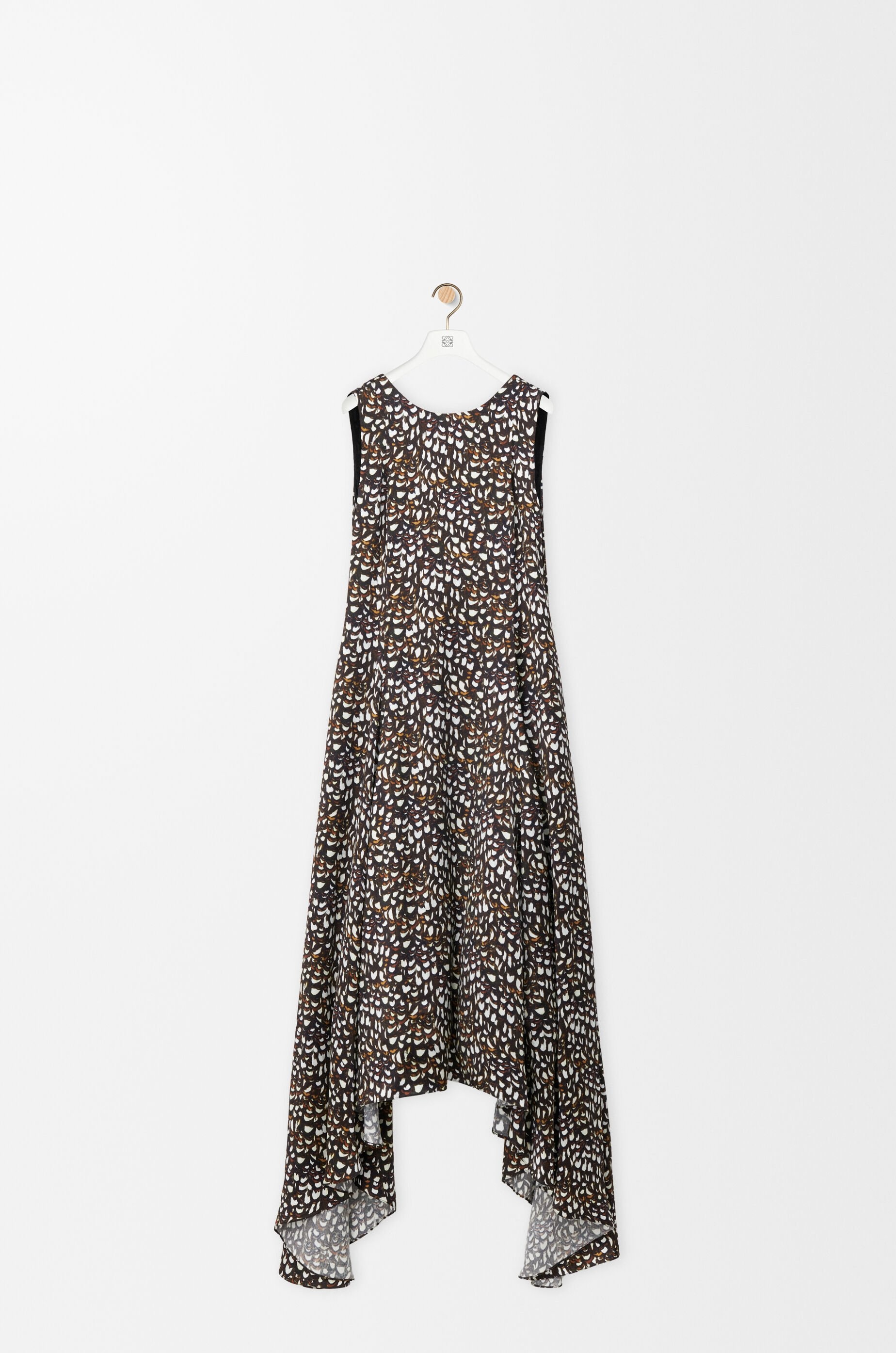 Dress in medium-weight viscose satin featuring an allover pheasant feather print and an asymmetric construction with an open back. - Regular fit, mid length - Round neck - Side zip fastening - Seam pockets - Fully lined Details - Colour : Brown/White - Main material : Viscose - Weight : 0.8 kg - Model ID : S540Y09XS6 - Made in : Italy