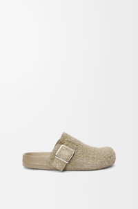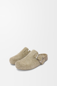 Mule in brushed suede featuring the signature LOEWE square buckle. - 25mm heel - Embossed LOEWE on the buckle - Moulded ergonomic fussbett in leather - Embossed Anagram rubber outsole Details - Colour : Khaki Green - Main material : Brushed Suede - Heel height : 2.5 - Weight : 0.9 kg - Model ID : LLSS379X06 - Made in : Italy