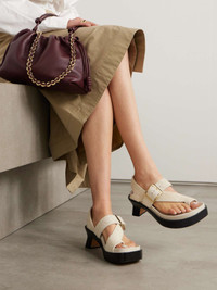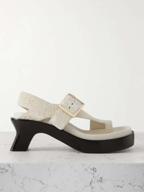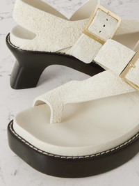 EDITORS'NOTES Loewe's 'Ease' sandals are crafted from brushed-suede that adds softness and texture to your outfits. They have buckled crossover straps and sculptural heels balanced by a sturdy platform. Wear them as part of a monochrome outfit. SIZE & FIT - Fits true to size, take your normal size - Only available in full sizes, go up to the nearest whole size if you take a half size - Italian sizing DETAILS & CARE - Heel measures approximately 90mm/ 3.5 inches - Off-white brushed-suede (Calf) - Buckle fastening strap