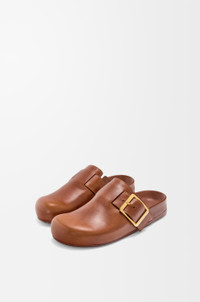 Mule in vegetable-tanned calfskin featuring the signature LOEWE square buckle. - 25mm heel - Embossed LOEWE on the buckle - Moulded ergonomic fussbett in leather - Embossed Anagram rubber outsole Details - Colour : Rust - Main material : Vegetal Calf - Heel height : 2.5 - Weight : 0.9 kg - Model ID : LLSS465X03 - Made in : Italy