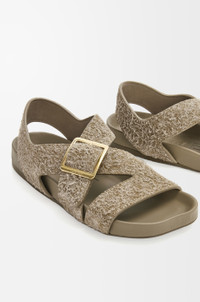 Sandal crafted in our iconic brushed suede, featuring interlaced straps and an oversize LOEWE squared buckle for adjustability. - Ergonomic fussbet - Embossed Anagram rubber outsole - LOEWE branding engraved on the buckle Details - Colour : Khaki Green - Main material : Brushed Suede - Heel height : 2 - Weight : 0.668 kg - Model ID : L814465X94 - Made in : Italy