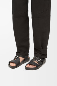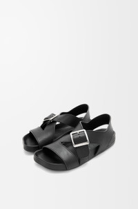 Sandal crafted in vegetal calf, featuring interlaced straps and an oversize LOEWE squared buckle for adjustability. - Ergonomic fussbet - Embossed Anagram rubber outsole - LOEWE branding engraved on the buckle Details - Colour : Black - Main material : Vegetal Calf - Heel height : 2 - Weight : 0.668 kg - Model ID : L814465X82 - Made in : Italy