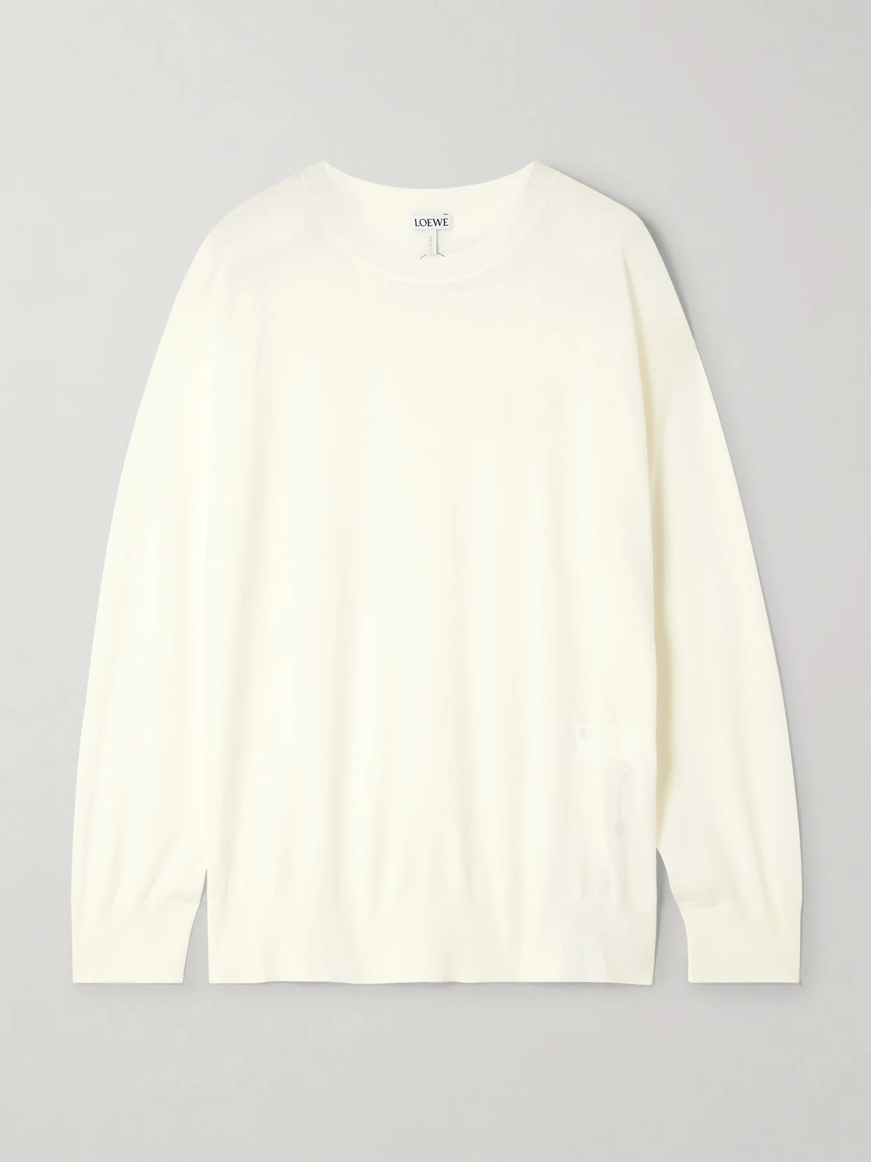 Loewe's sweater is knitted from lightweight wool and has a super fine handle. The 'Anagram' logo is embroidered at the chest, while ribbed trims temper the relaxed fit.