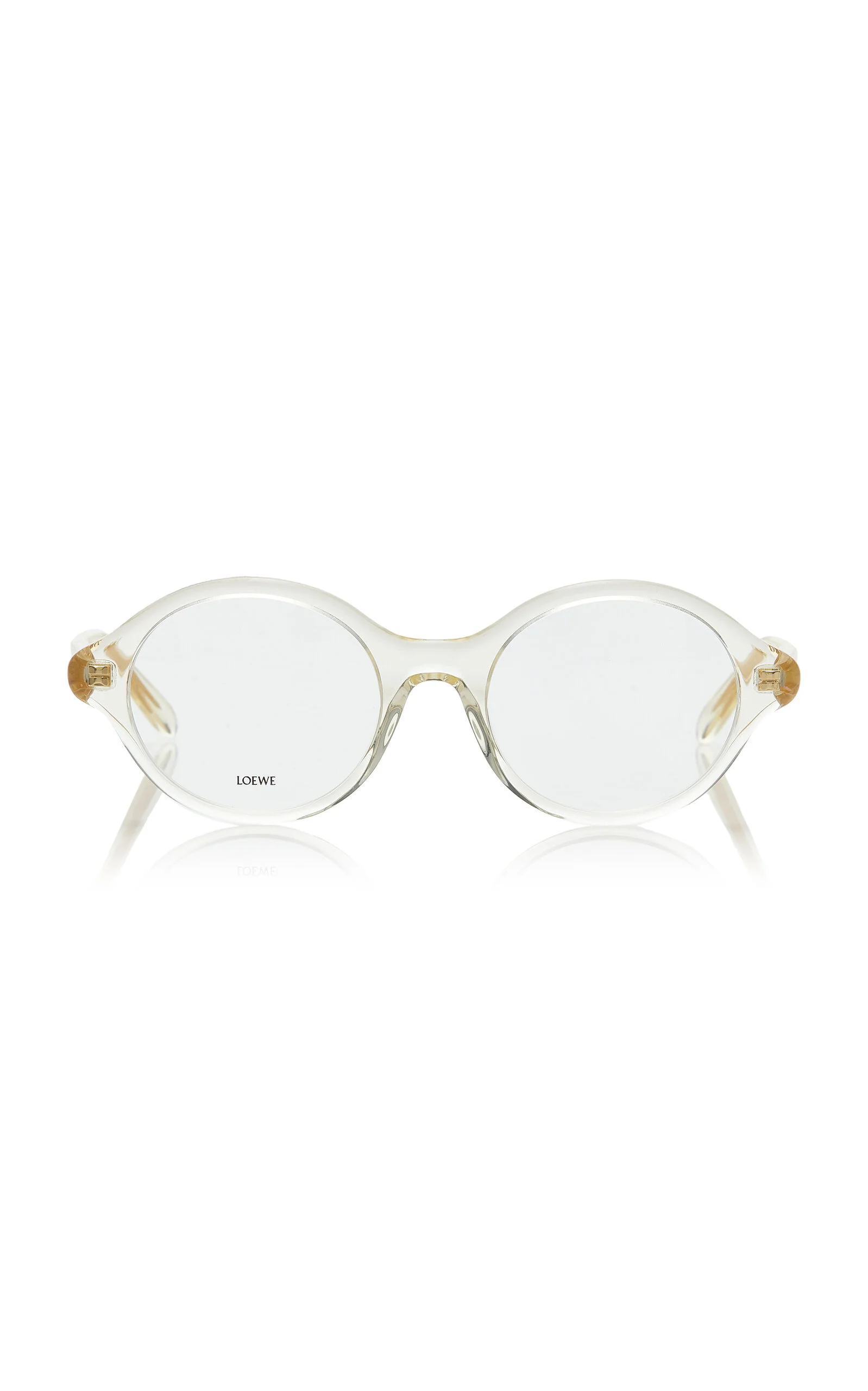 Loewe's eyewear is defined by their contemporary silhouettes. Made in Italy, the vintage-inspired frames are crafted from the highest quality materials and add effortless glamour to any look. This pair has round frames made from transparent acetate with a visible gold wire core. PRODUCT DETAILS - Composition: acetate - Made in Italy