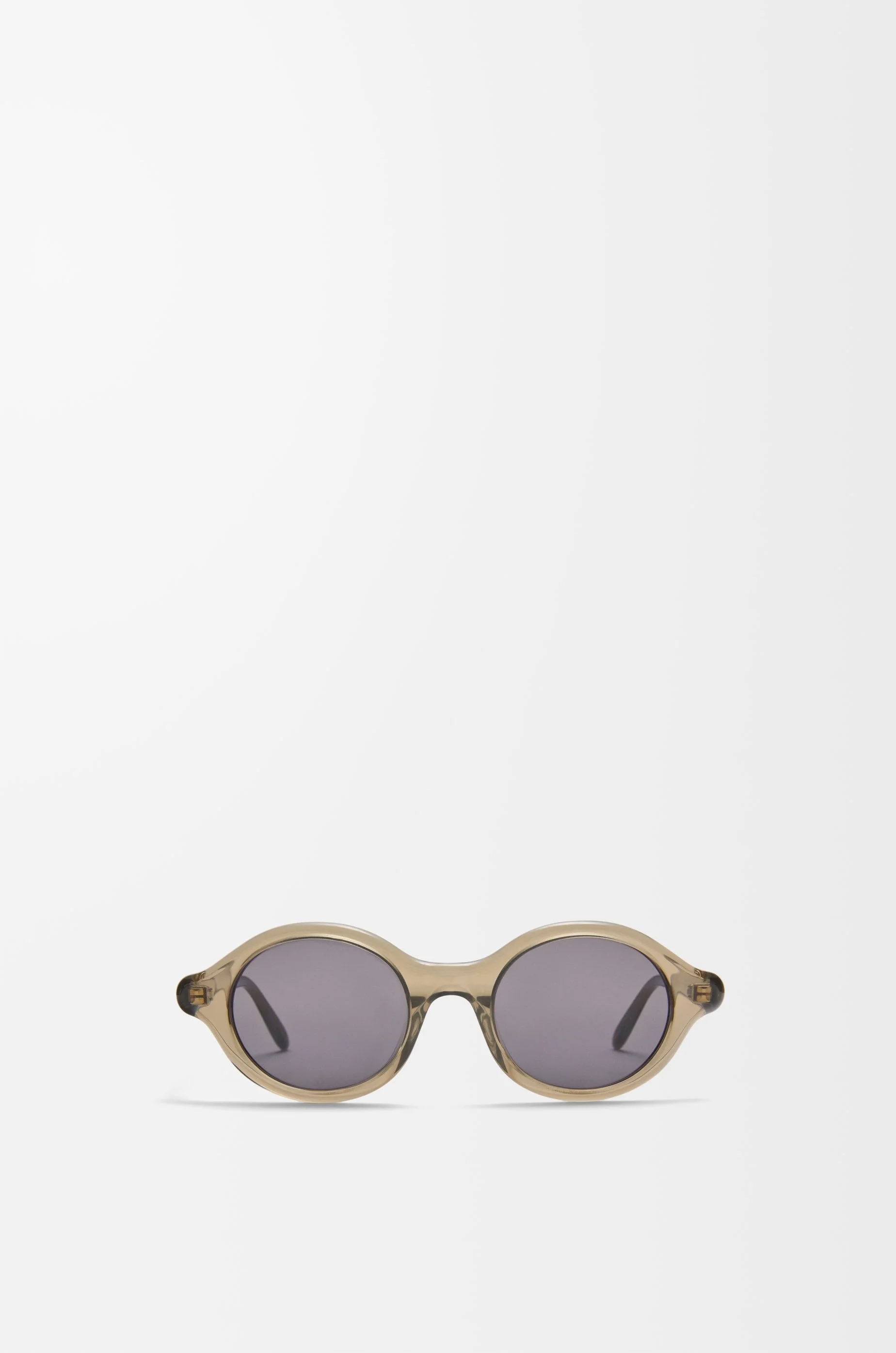 Oval-shaped sunglasses in a slim acetate construction. - Universal fit - UVA/UVB protection - Gold-finish metal LOEWE Colour: Khaki Green Main material: Acetate Weight: 0.032 kg Made in: Italy