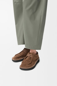 Lace-up shoe in suede calfskin featuring a moc-toe construction with an unlined upper, a bulky toe shape outlined by suede piping and flat cotton laces. - 30mm heel - Comes with two sets of laces - LOEWE embossed label at the side - Rubber sole Colour: Brown Main material: Calf Suede Weight: 0.8 kg Made in: Italy