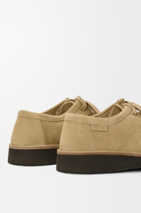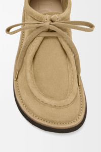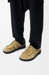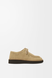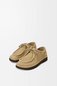 Lace-up shoe in suede calfskin featuring a moc-toe construction with an unlined upper, a bulky toe shape outlined by suede piping and flat cotton laces. - 30mm heel - Comes with two sets of laces - LOEWE embossed label at the side - Rubber sole Colour: Sahara Main material: Calf Suede Weight: 0.8 kg Made in: Italy
