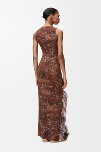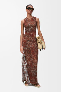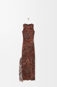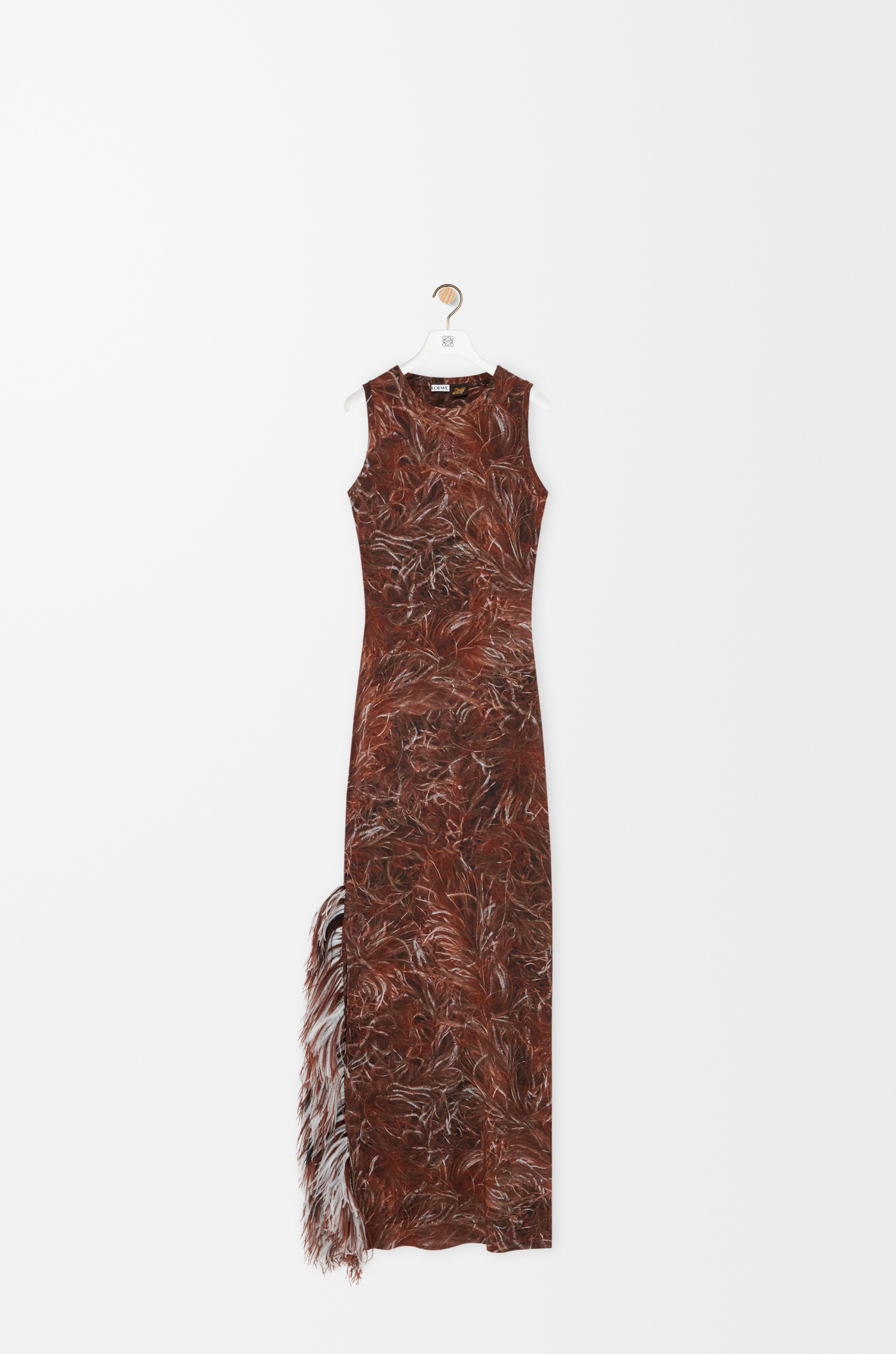 Tank dress in lightweight stretch modal featuring an allover feather print and a side slit with detachable feather embellishment. - Slim fit, long length - Round neck - Anagram embroidery placed at the front Colour: Brown/Multicolor Main material: Modal/Elastane Weight: 0.2 kg Made in: Portugal