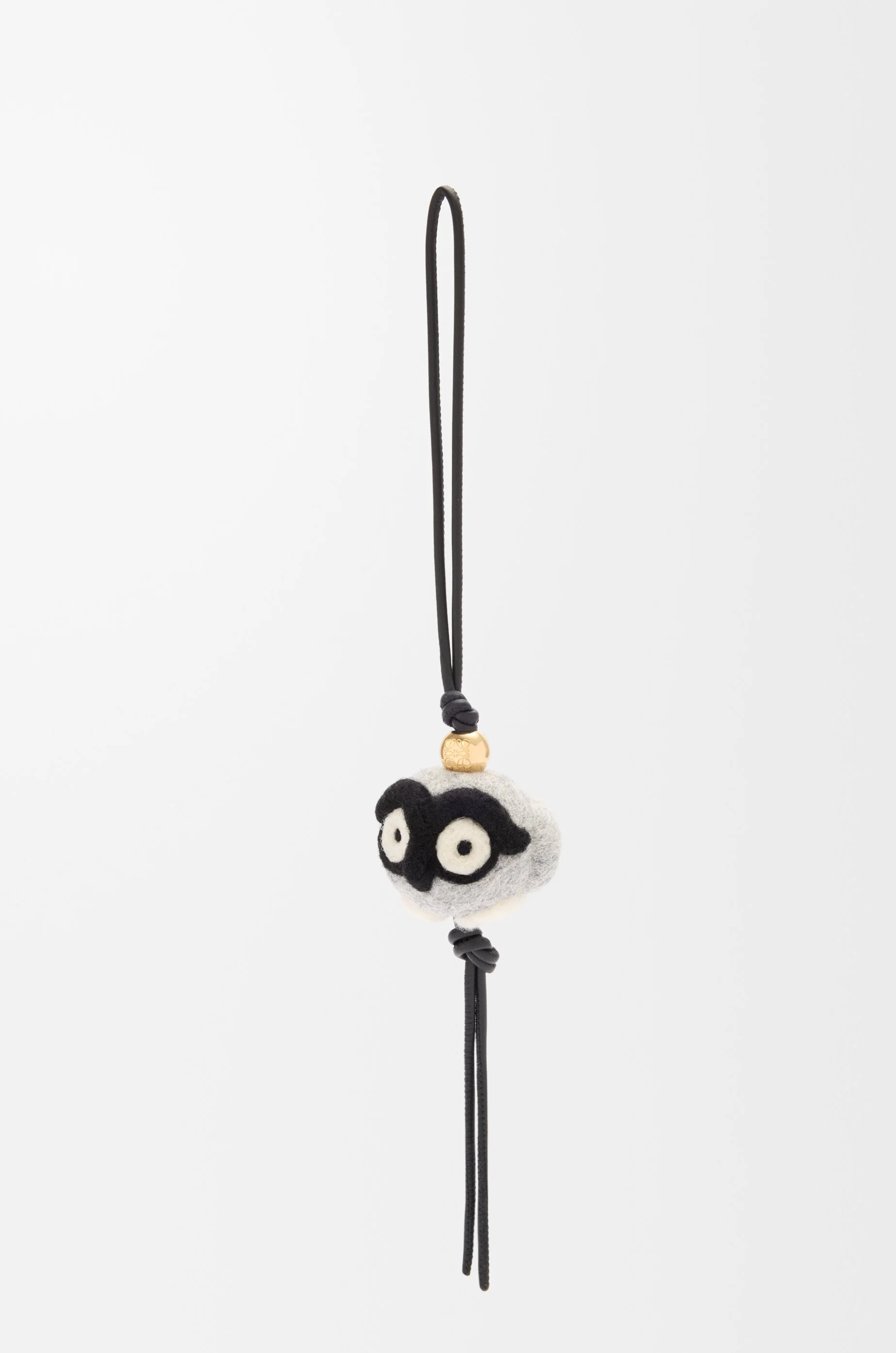 Owl charm in felt with a looped calfskin strap and an Anagram Pebble in a gold finish. - Engraved Anagram Colour: Light Grey/Black Metallic colour: Gold Main material: Felt Weight: 0.02 kg Width: 30 cm Depth: 5 cm Made in: Spain