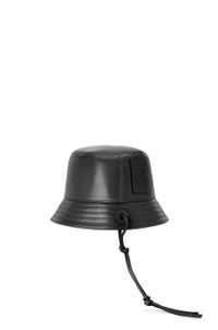 Bucket hat crafted in nappa calfskin with a stitched brim and calfskin strap. - Herringbone cotton canvas lining - Embossed LOEWE Anagram patch Details - Colour: Black - Main material: Nappa Calf - Weight : 0.11 kg - Height (cm): 14 - Width (cm): 22 - Depth (cm): 24 - Height (inch): 5.5 - Width (inch): 8.7 - Depth (inch): 9.4 - Model ID: K000HB1X01 - Made in: Italy