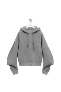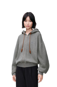 Hoodie in medium-weight cotton and cashmere fleece featuring a hooded collar with a Flamenco-inspired leather knot drawstring. - Relaxed fit, regular length - Zip front fastening - Ribbed cuffs and hem - Curved sleeves Details - Colour : Grey - Main material : Cotton/Cashemere - Weight : 0.09 kg - Model ID : S359Y25X53 - Made in : Portugal