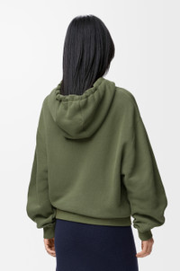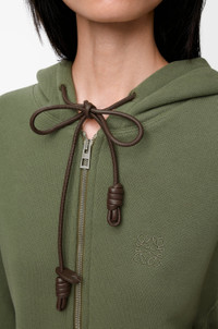 Hoodie in medium-weight cotton and cashmere fleece featuring a Flamenco-inspired leather knot drawstring. - Relaxed fit, regular length - Curved sleeves - Ribbed cuffs and hem - Zip front fastening Colour: Khaki Green Main material: Cotton/cashmere Weight: 0.84 kg Made in: Portugal Materials & care Main Material: 95% cotton 5% cashmere