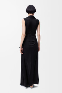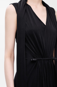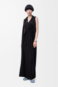 Dress in lightweight fluid silk jersey featuring a gathered front with a Flamenco-inspired drawstring and a lavalliere scarf. - Regular fit, long length - V-neck Colour: Black Main material: Silk Weight: 0.7 kg Made in: Italy Materials & care Main Material: 100% silk