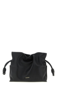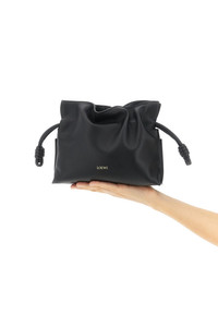 cod. A411FC2XA61100 'Flamenco' mini calf nappa clutch bag with front embossed logo, magnetic closure, drawstring with iconic knots, suede lining, adjustable and removable shoulder strap. Color: Black Size & Fit: W 23.9 x H 18 x D 9 cm Composition: 100% calfskin leather (Bos Taurus) Made in: Spain
