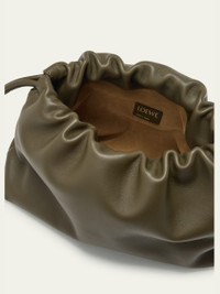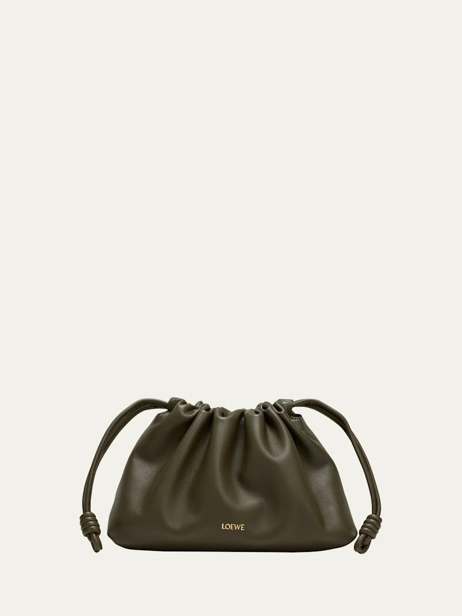 Loewe "Flamenco" crossbody bag in leather Chain top handle Crossbody strap Can be worn as a top handle or crossbody bag Ruched drawstring and magnetic closures Approx. 7.8"H x 11.7"W x 4.1"D Made in Spain Online Inquiries: BGS21_V6DRG| Store Inquiries: #4742339