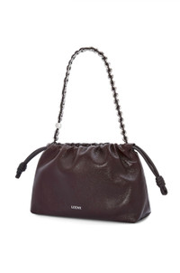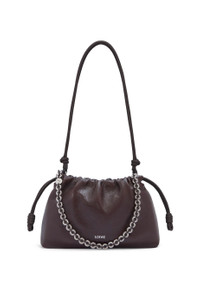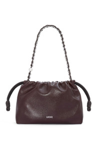The Flamenco purse is defined by a ruched design complemented by signature knots at the sides. This medium version is crafted in supple deerskin. - Shoulder, crossbody or hand carry - Detachable and adjustable leather strap - Detachable donut chain with an Anagram Pebble - Magnetic closure - Suede lining - Silver embossed LOEWE Details - Colour : Oxblood - Metallic colour : Palladium - Main material : Deer - Strap length : 59/ 82 -142 cm - Strap Drop : 27 / 37 - 67 cm - Weight : 0.34 kg - Height (cm) : 20 - Width (cm) : 30 - Depth (cm) : 10.5 - Height (inch) : 7.9 - Width (inch) : 11.8 - Depth (inch) : 4.1 - Model ID : A411FCRX48 - CIL : - 0011243052 - Made in : Spain