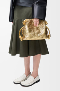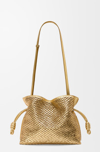 The Flamenco is an iconic design launched in the 1980s. It cinches closed using drawstring pulls finished in signature coiled knots. This medium version is crafted in laminated lambskin with hand-sewn trompe l'oeil scales. - Shoulder, crossbody or hand carry - Detachable and adjustable strap - Magnetic closure - Suede lining Details - Colour : Gold - Metallic colour : Gold - Main material : Laminated Lambskin - Strap length : 96 - 120 cm - Strap Drop : 38 - 44 cm - Weight : 0.55 kg - Height (cm) : 24.5 - Width (cm) : 30 - Depth (cm) : 10.5 - Height (inch) : 9.6 - Width (inch) : 11.8 - Depth (inch) : 4.1 - Model ID : A411FC1XCQ - CIL : - 0011243235 - Made in : Spain